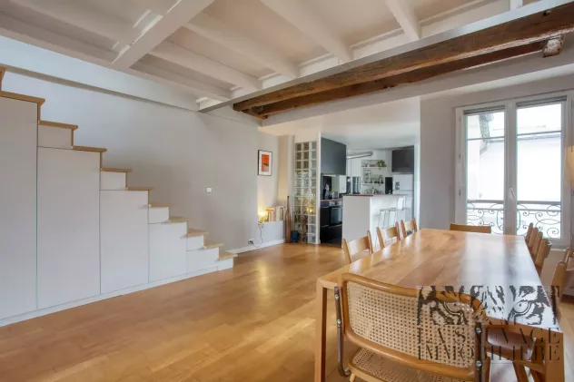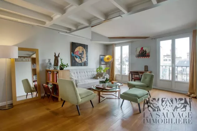 Situé au cœur du quartier central de Bonne Nouvelle, à deux pas des commerces et des transports, cet appartement occupe le 4ème et dernier étage d’un immeuble ancien et bénéficie de volumes atypiques ainsi que d’un charme authentiquement parisien.