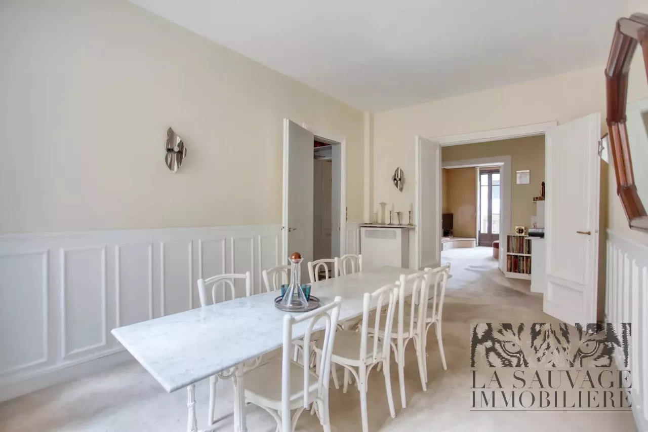 À proximité immédiate du Bois de Boulogne et de la Fondation Louis Vuitton, au sein d’un somptueux immeuble Art Nouveau sécurisé avec gardienne, ce superbe appartement de 147 m² situé au 1er étage avec ascenseur incarne l’élégance parisienne alliée au confort familial.