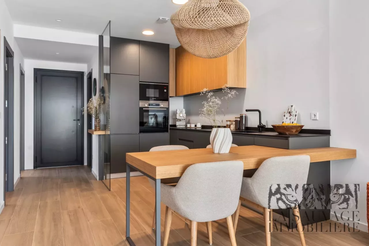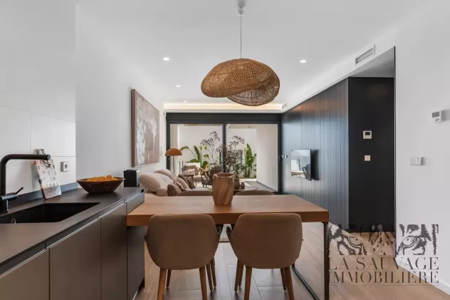 Dans un environnement naturel préservé, ce duplex de 109 m² en rez-de-jardin incarne un art de vivre contemporain, entre élégance, sérénité et ouverture sur l’extérieur.
