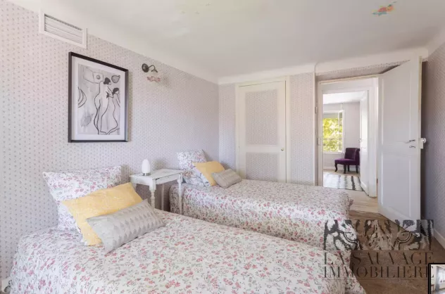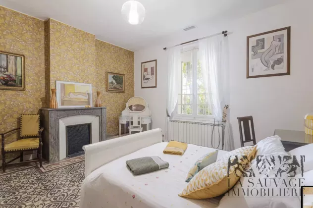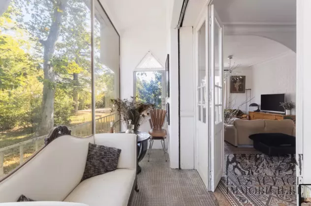In a walled and beautifully wooded park of 2,580 m2, this sumptuous mansion with a surface area of about 200 m2, embodies the timeless charm of exceptional architecture.