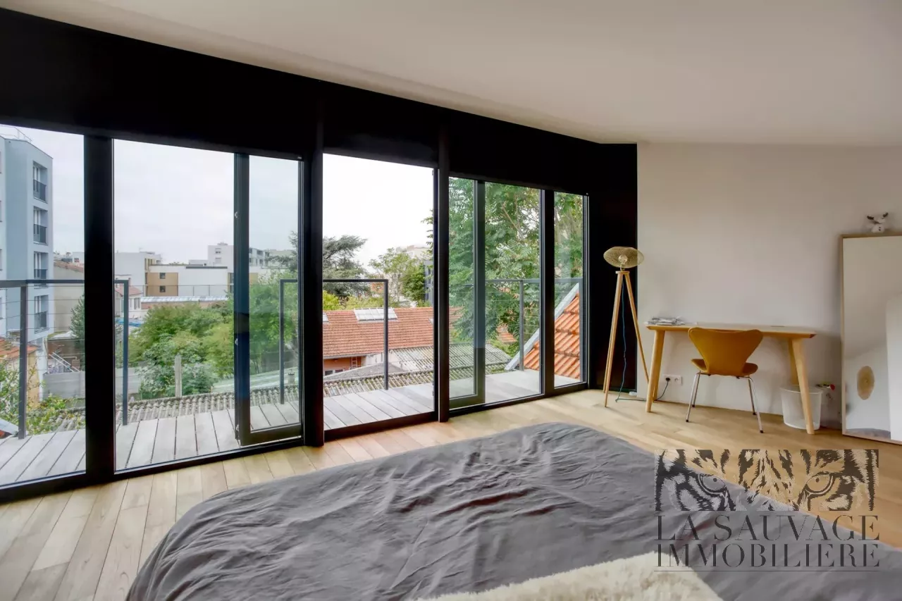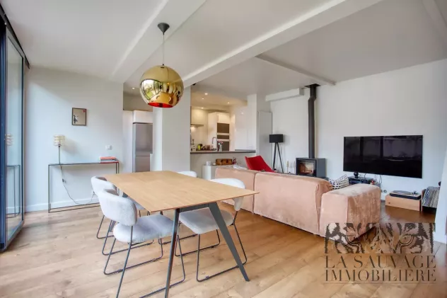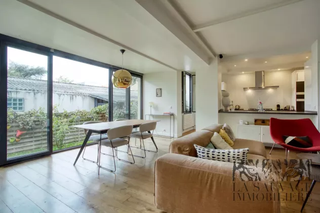 À seulement 100 mètres du métro Croix-de-Chavaux, cette maison au calme de 111,13 m2 Loi Carrez et 165,51 m² en surface total au sol, entièrement repensée par un architecte offre un cadre de vie d’exception.