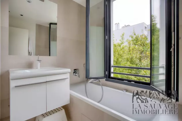 Noyée dans un écrin de verdure, elle bénéficie d’un jardin privatif de 70 m² exposé plein sud, sans aucun vis-à-vis, véritable havre de paix en ville.