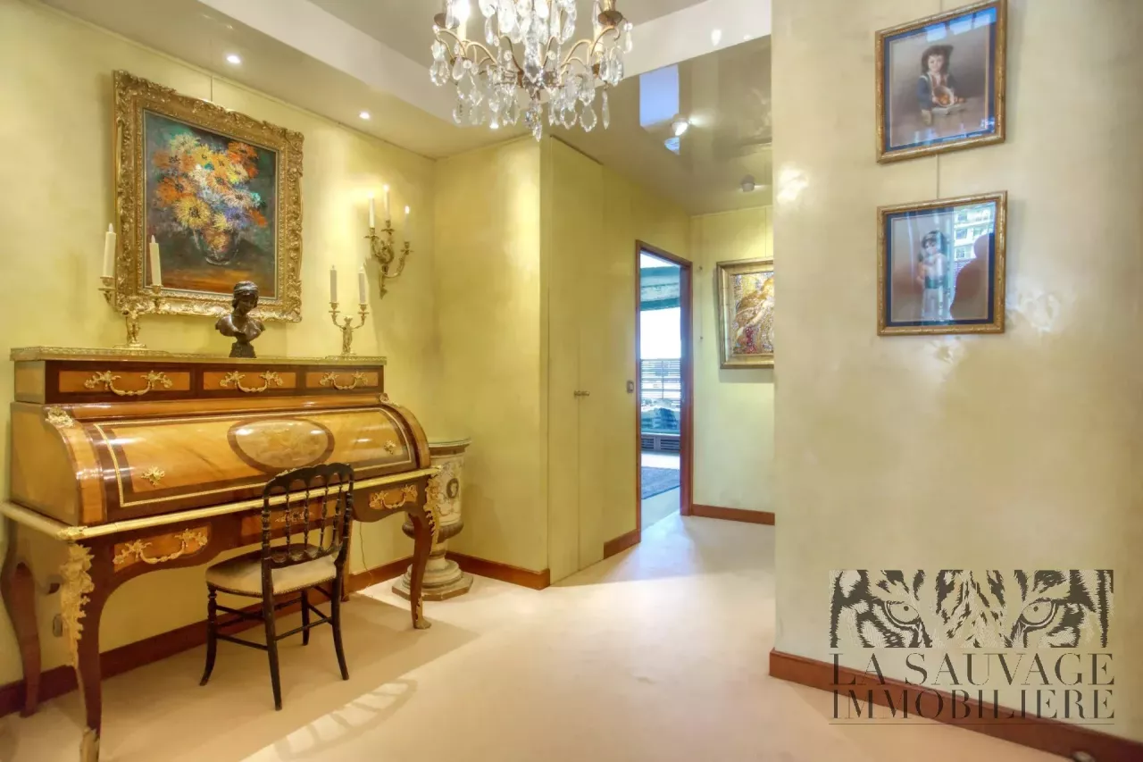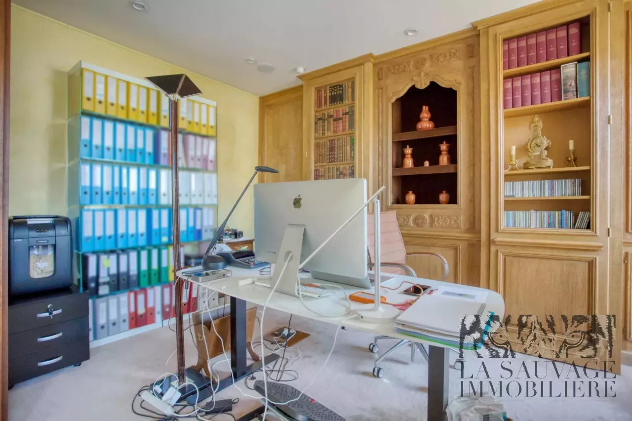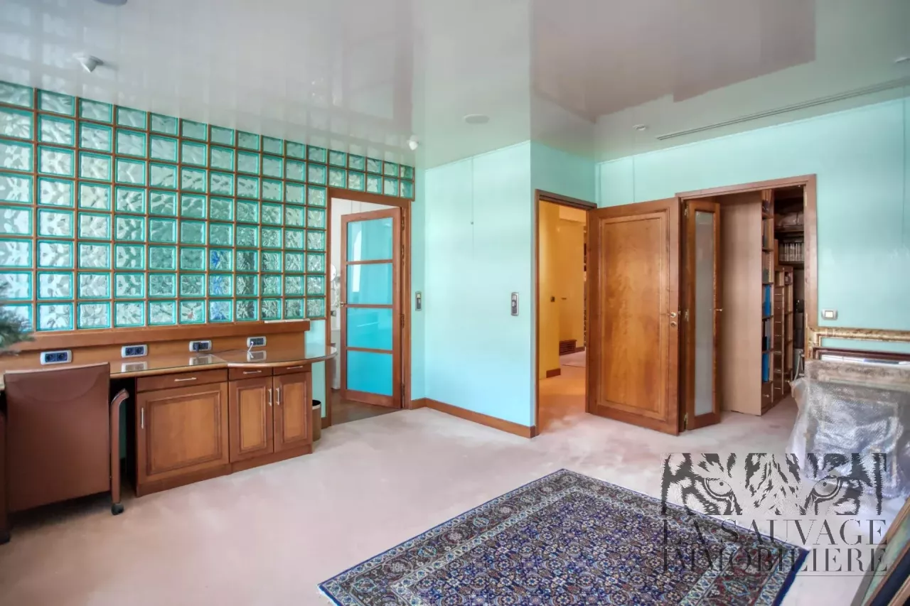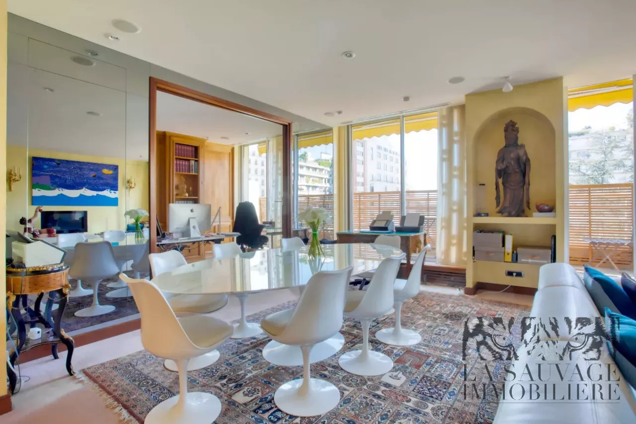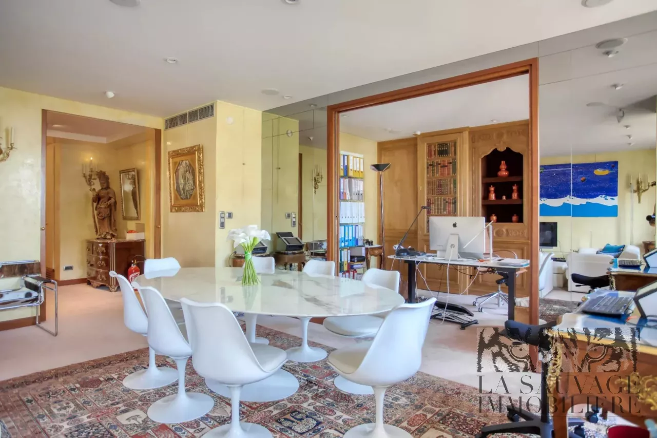 Il s’ouvre sur un vaste double séjour baigné de lumière, prolongé par un espace bureau de 13,63 m², offrant un cadre de vie à la fois convivial et raffiné. Cet espace peut aisément être aménagé en seconde chambre, selon les besoins.