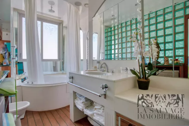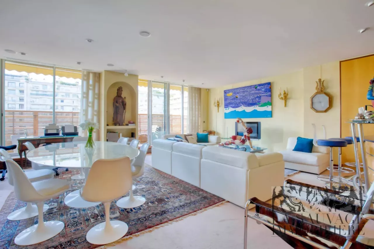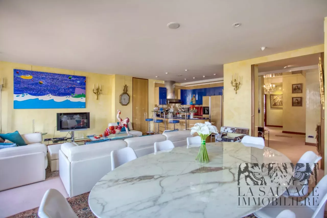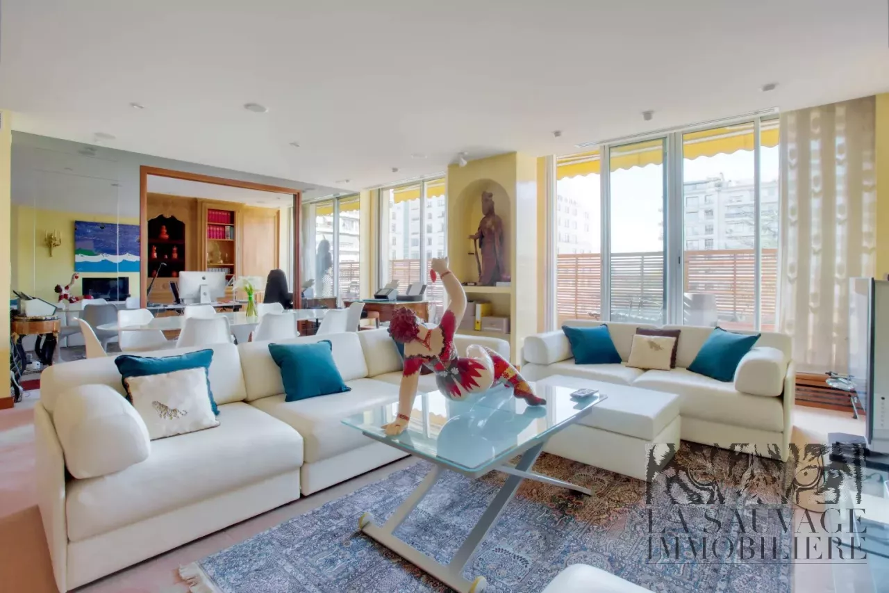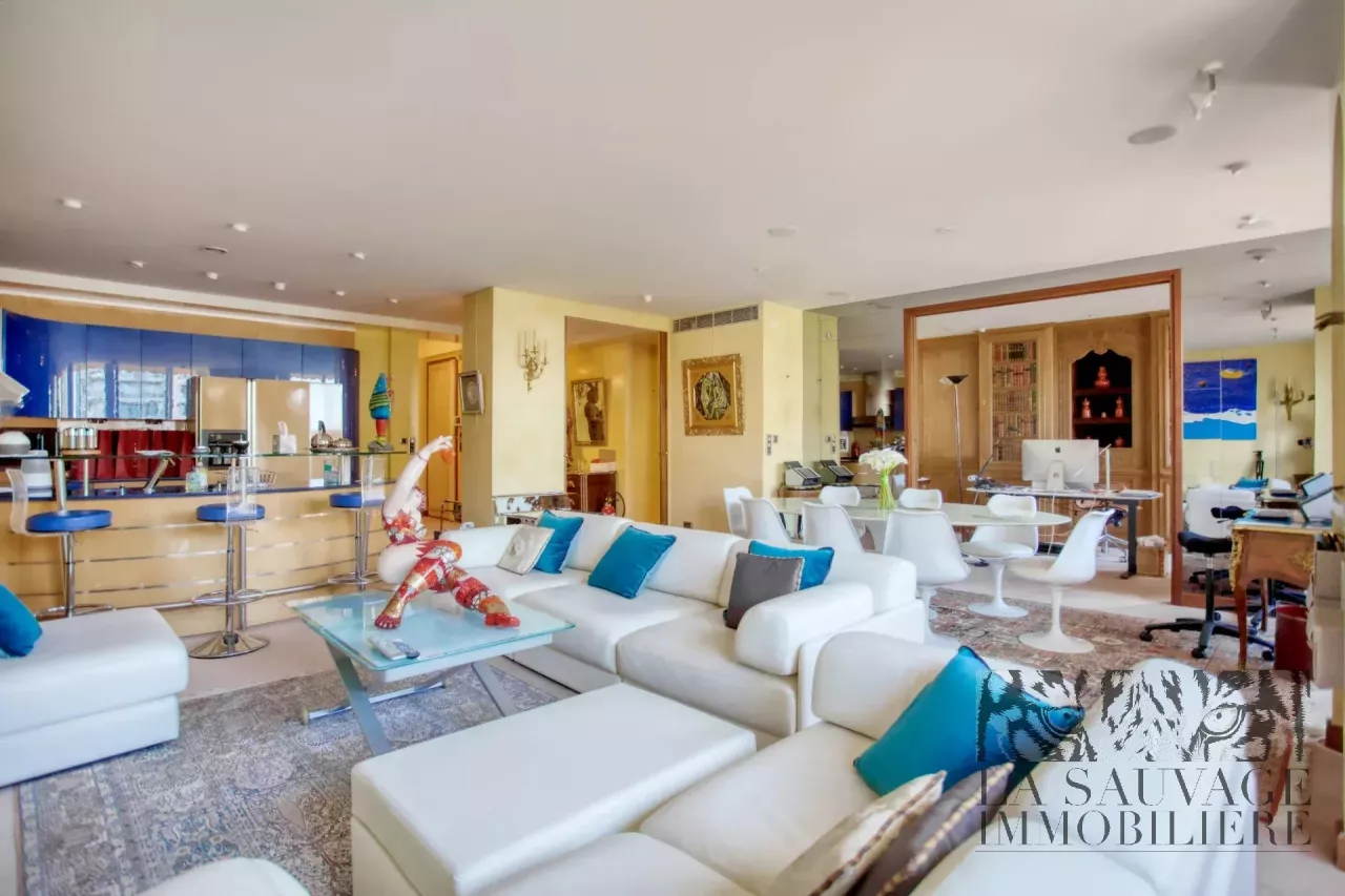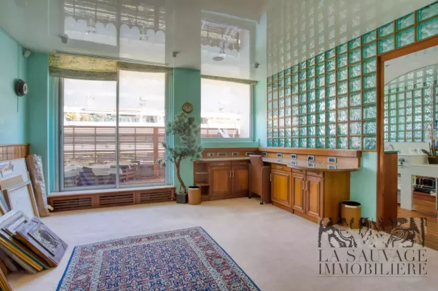 Il s’ouvre sur un vaste double séjour baigné de lumière, prolongé par un espace bureau de 13,63 m², offrant un cadre de vie à la fois convivial et raffiné. Cet espace peut aisément être aménagé en seconde chambre, selon les besoins.