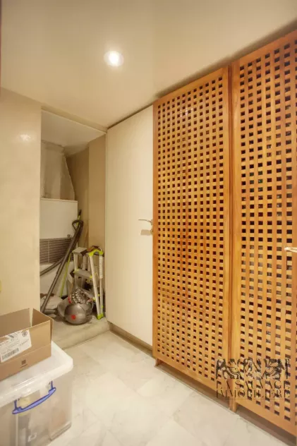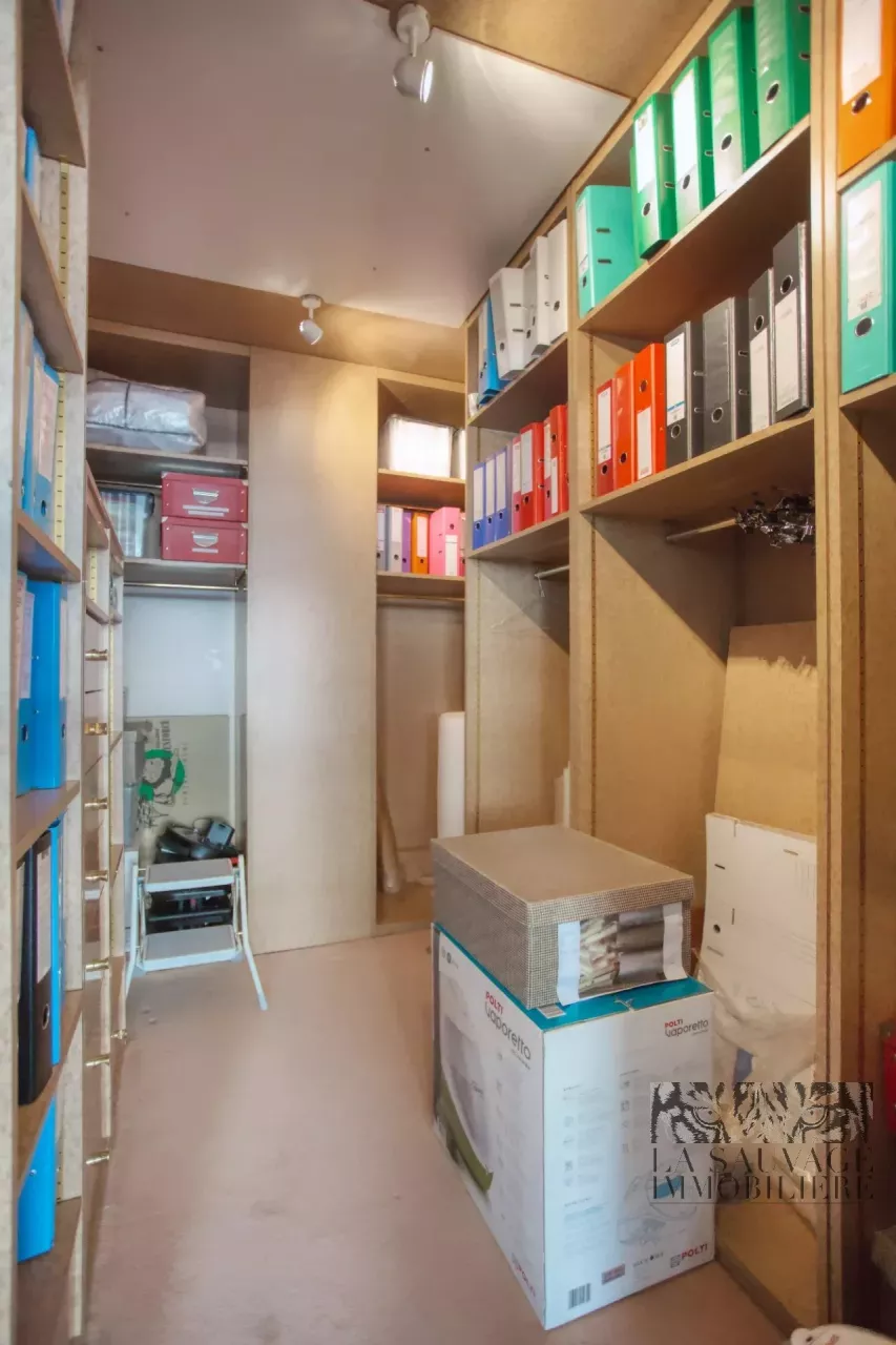 De nombreux rangements, une pièce de stockage ainsi qu’une buanderie viennent parfaire le confort de ce bien.